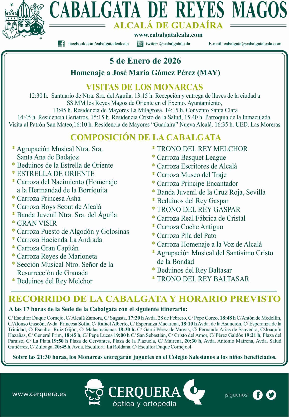 Programa de la Cabalgata de Reyes Magos de Alcalá de Guadaíra – 5 de Enero de 2026